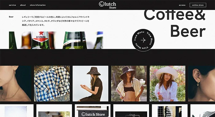 左側の飲み物写真エリアが、スクロールに応じて写真が切り替わり、サイトを探索するような感覚でコンテンツを楽しめる。