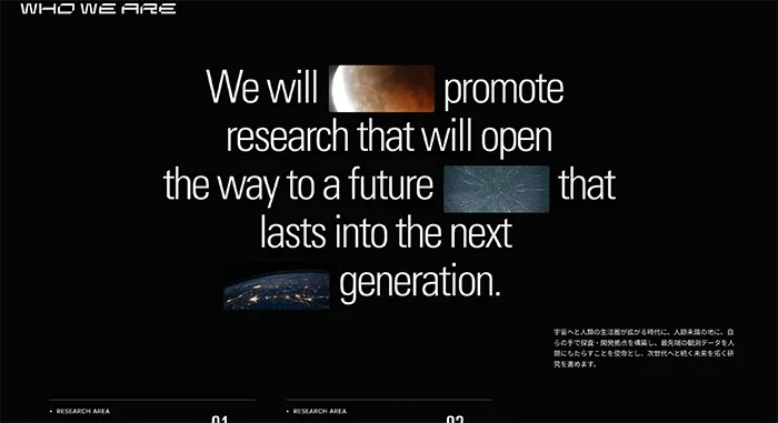 全体が白黒のモノトーンで統一され、宇宙的な雰囲気を演出している。