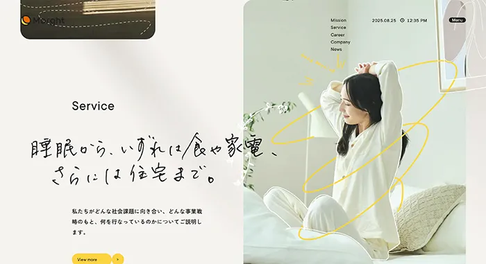 大きめの角丸の中に動画を切り抜いて見せるデザインになっており、動画が持つ雰囲気を柔らかくし、サイト全体のトーンと調和させている。