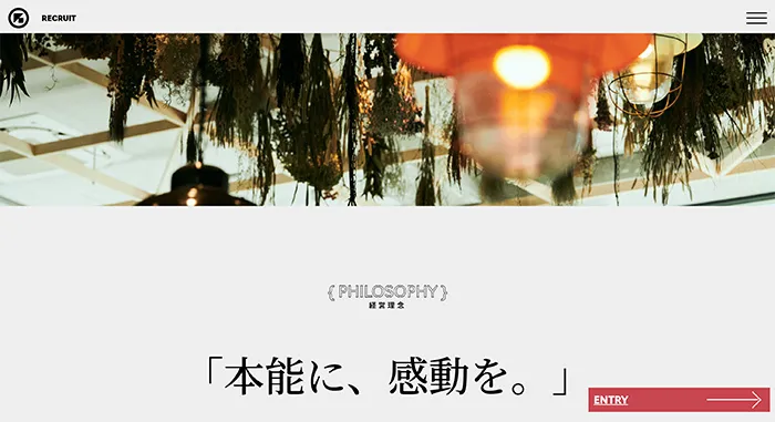ヘッダーの上部と、フッターの下部に少しスペースを空け、そこに動画を表示している。これにより、「自然の中に」存在している感覚を効果的に高めている。