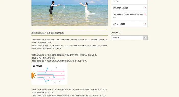 沖縄の空が青く見える理由について、非常にわかりやすく書かれている。専門的な内容を噛み砕いて説明する構成が優れている。 - 記事を彩る美しい海の写真